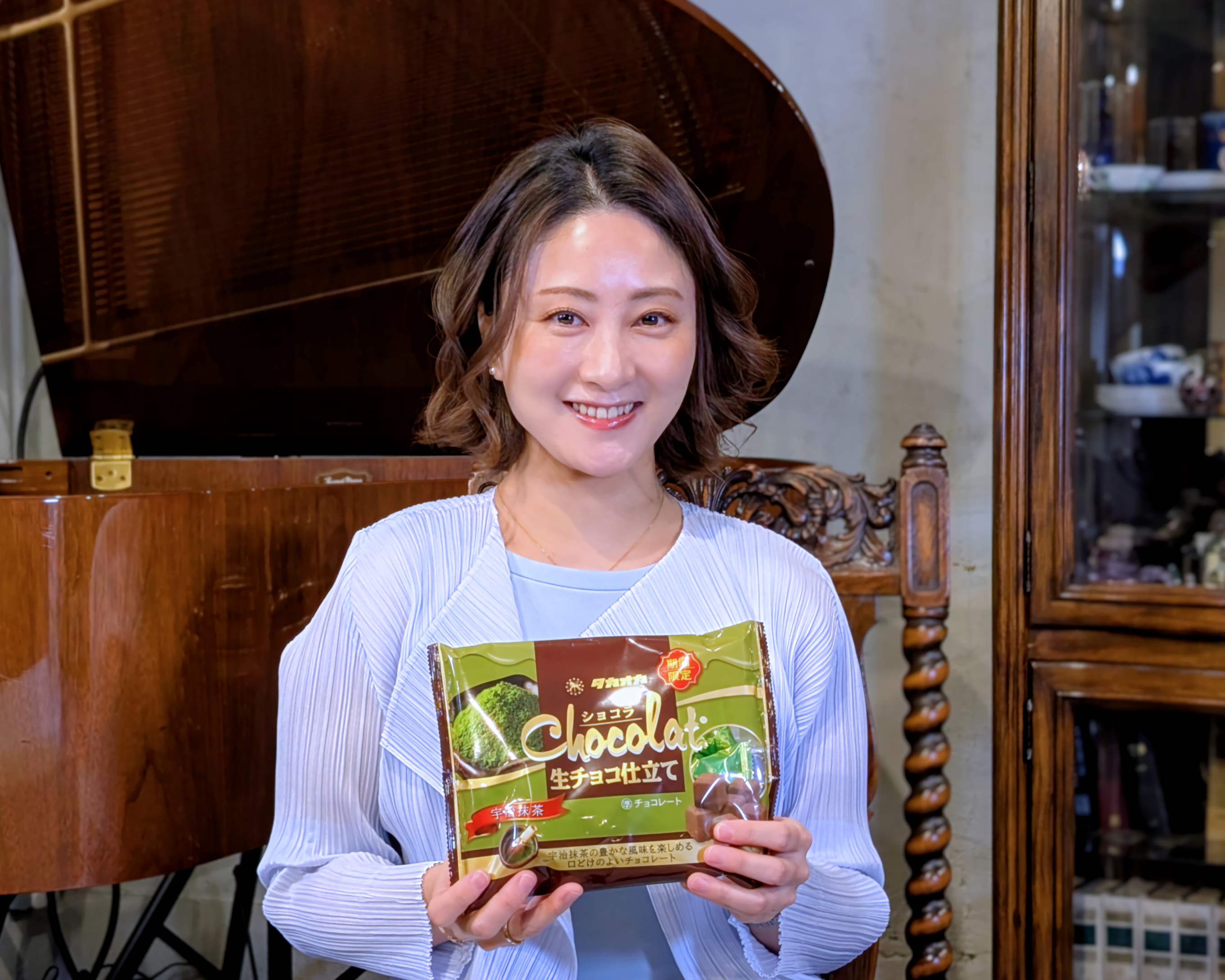 チョコレートに宇治抹茶を練り込んだ文字通りの宇治抹茶チョコレート。生チョコ仕立てなので口の中でふわっと溶ける感触はたの生チョコ仕立てのチョコレートと同じだが、シリーズ先導役として最も人気のショコラ生チョコ仕立てと同様、きめの細かいココアがたっぷりかかっていて、抹茶をまぶしたココアを味わっているかのような他に類のないチョコレート。